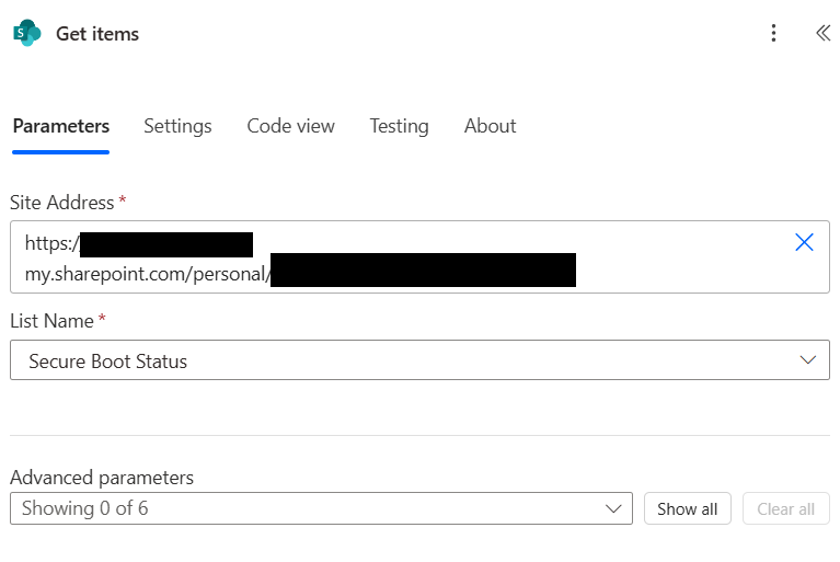 Add a Get Items (SharePoint) Action and connect it to your Sharepoint List you created in Step 1.