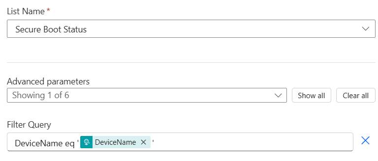 DeviceName eq '@{triggerBody()?['DeviceName']}'